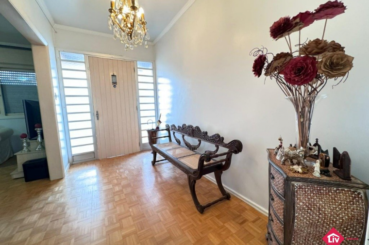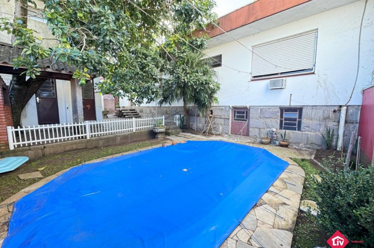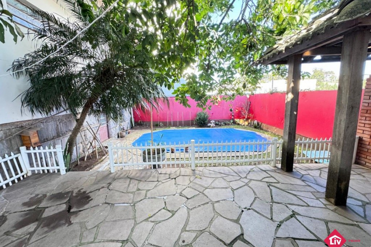 Casa em alvenaria próximo a Receita Federal com 3 dormitórios (1 suíte), sala, cozinha, banheiro social, ampla garagem, pátio nos fundos com quiosque, piscina, banheiro auxiliar e despensa, ampla garagem interna e externa. Terreno com 21 metros de frente e 446,04 metros no total.