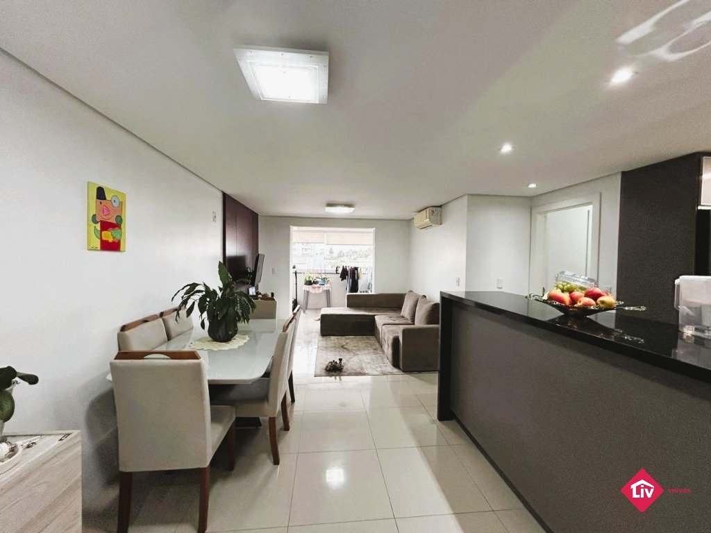 Apartamento semimobiliado em São Pelegrino, com 3 dormitórios, sendo 1 suíte, sala de estar e jantar integrada com a cozinha com churrasqueira, sacada fechada, área de serviço, banheiro social, split, vista panorâmica, posição solar oeste e 2 vagas de garagem.